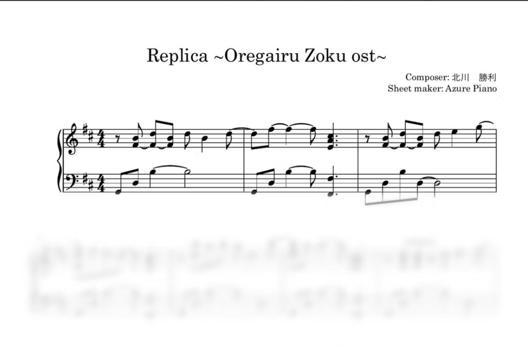 レプリカ Replica ~Oregairu Zoku ost~ ピアノ楽譜Piano Music Sheet | azurepiano