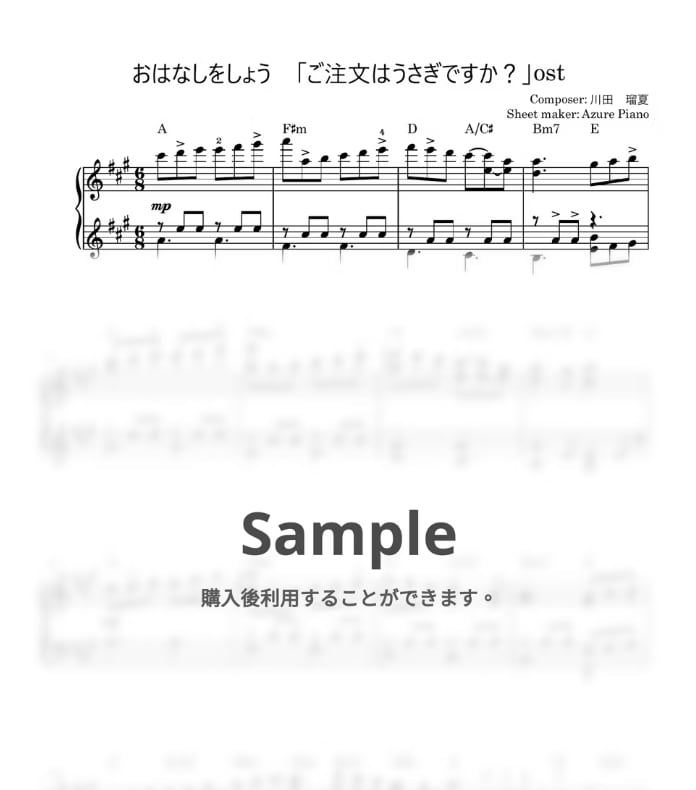 おはなしをしよう 「ご注文はうさぎですか?」ostのピアノアレンジの楽譜pdfです。